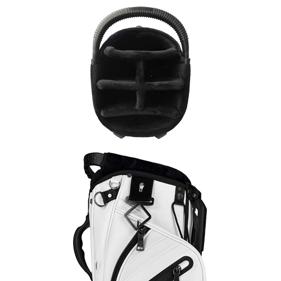 Classic tour-grade premium quality meets affordable luxury with the RevCore Hybrid Stand Golf Bags. Designed for golfers who frequently use carts or push carts, our bags offer practical solutions without compromising style or comfort. The newly designed 6- and 14-way plush velvet-lined tops provide seamless organization for optimal club retrieval. Full-length dividers extend to the bottom of the bag, preventing club tangling and jamming for ultimate club safety and organization. A secure stay-flat base ensures your bag remains upright, maintaining stability and minimizing the risk of your clubs falling. To top it off, a protective cart strap is included, adding extra security when used on a riding cart or push cart. Thoughtfully designed with customer-centric features, the RevCore Hybrid Stand Golf Bag delivers performance, durability, and affordability in one stylish package.